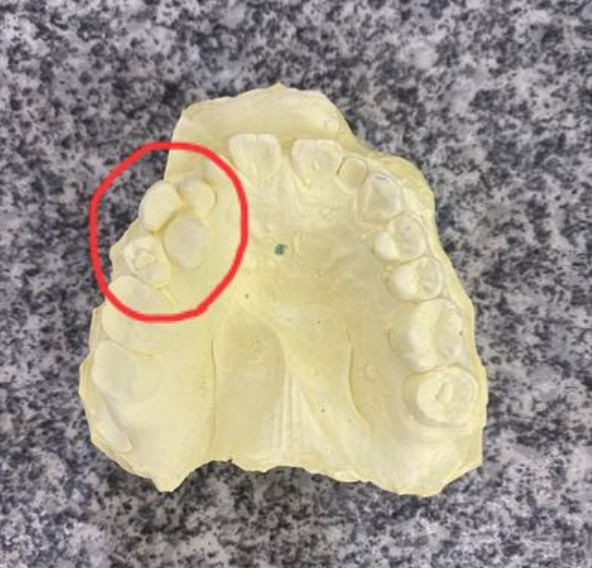 私の治療計画では、特に25番辺りから矯正理由の主目的である右上の歯が重なる歯列不正の所が大きく動くため、今まで就寝時のみ使用していたエラスティックゴムを日中もできるだけ使用するよう指示がありました。